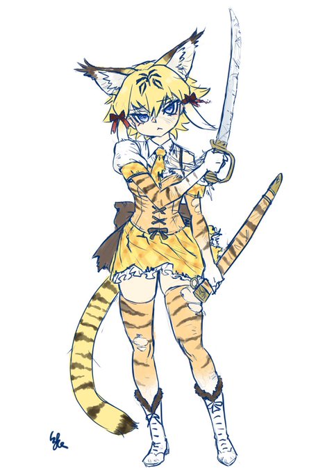 昔描いたオリフレのブラックサーベルさん #黒猫感謝の日 #けものフレンズ