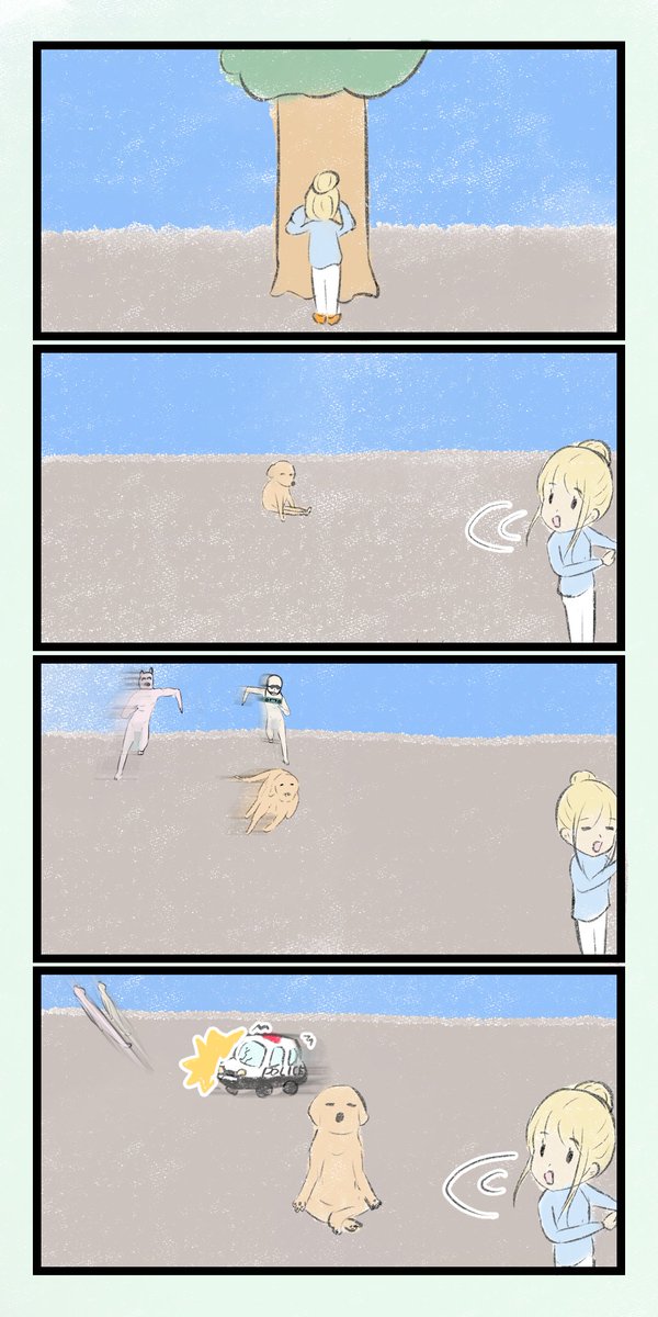 14 66 ゆうとモコ249 【だるまさんがころんだイーヌ】 #4コマ漫画 #漫画が読めるハッシュタグ 23/04/04 20:01