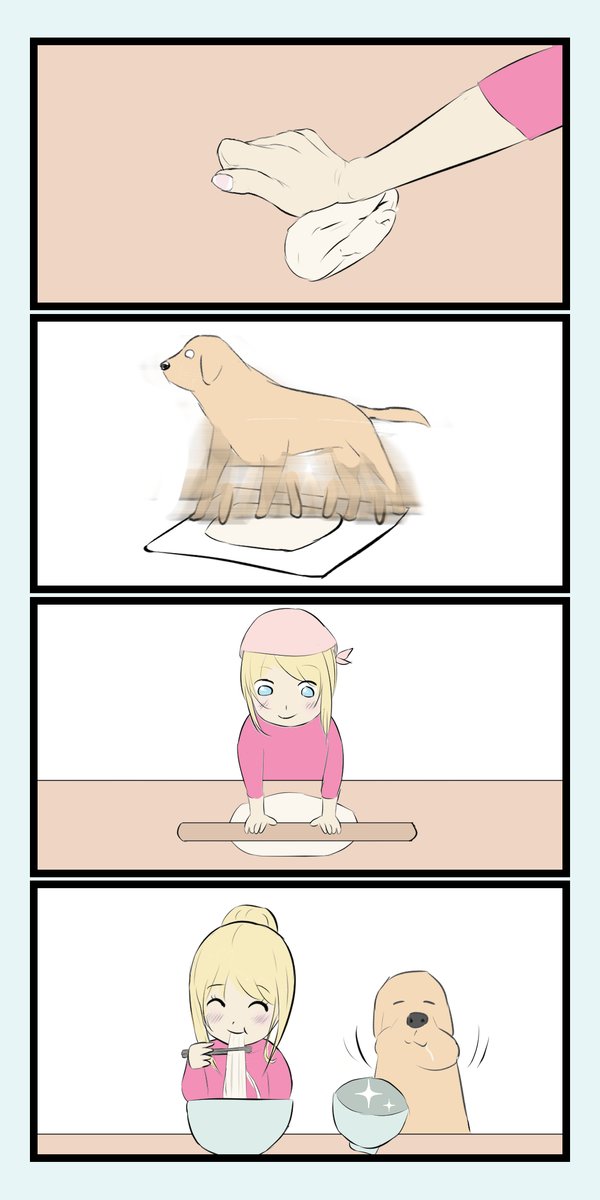 22 163 ゆうとモコ239 【うどん作るイーヌ】 #4コマ漫画 #漫画が読めるハッシュタグ 23/03/25 21:56