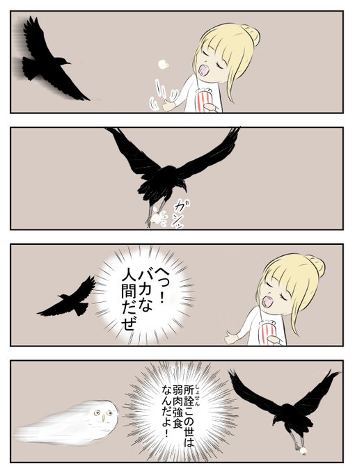 ゆうとモコ弐272 【弱肉強食】 #4コマ漫画 #漫画が読めるハッシュタグ 体力の限界を迎えたのでこれからは2日間に一回の更新になります😣