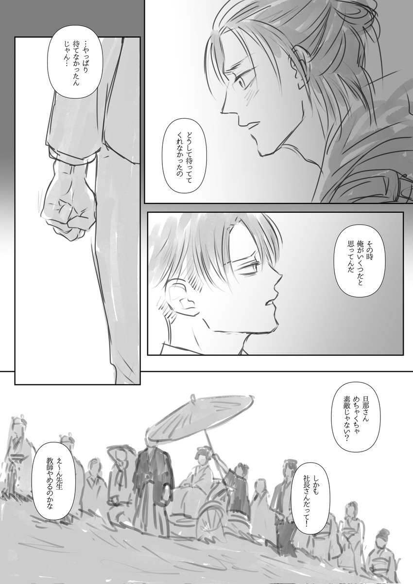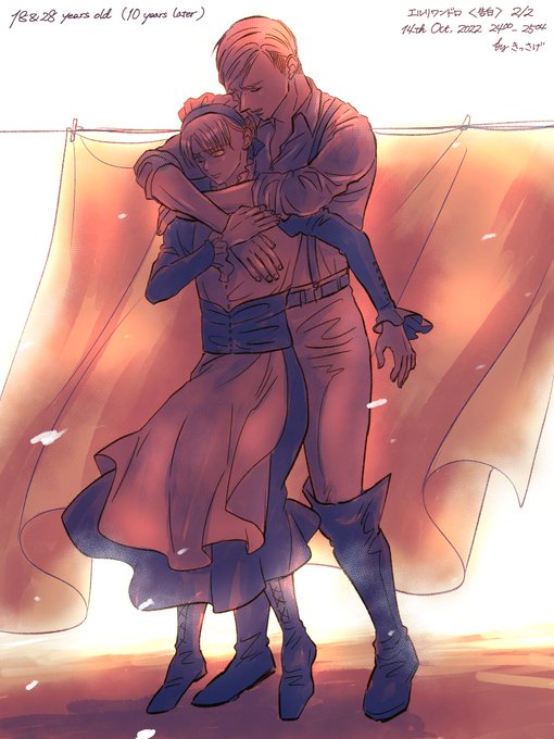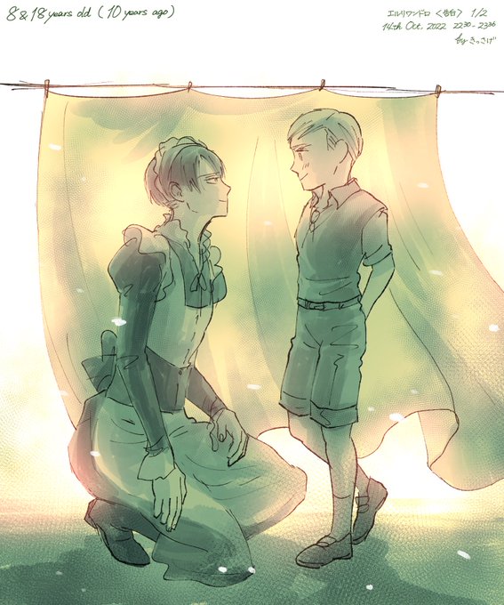 #エルリ版深夜の真剣お絵描き60分一本勝負 eruri 1 hour drawing [22:30-23:36] 「告白」1/2 “childhood” 洗濯物に隠れて告げた初恋はシーツと一緒に柔らかく包まれてしまった