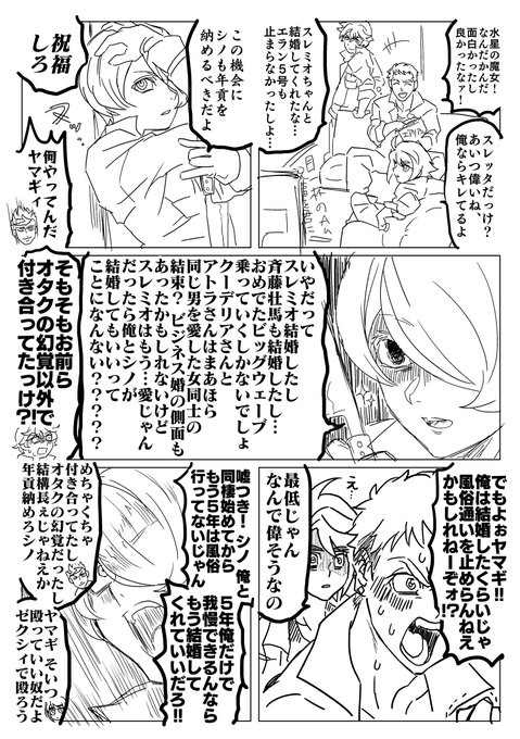 ↑ ツイートにカプ名が含まれてはいるものの実際のところ別作品のBLCPがメインで主成分が足りないというのは検索などで引っかけた方に申し訳ないなと思ったので スレミオ分を足します ※クロスオーバー/画面外でシノヤマがイチャついている