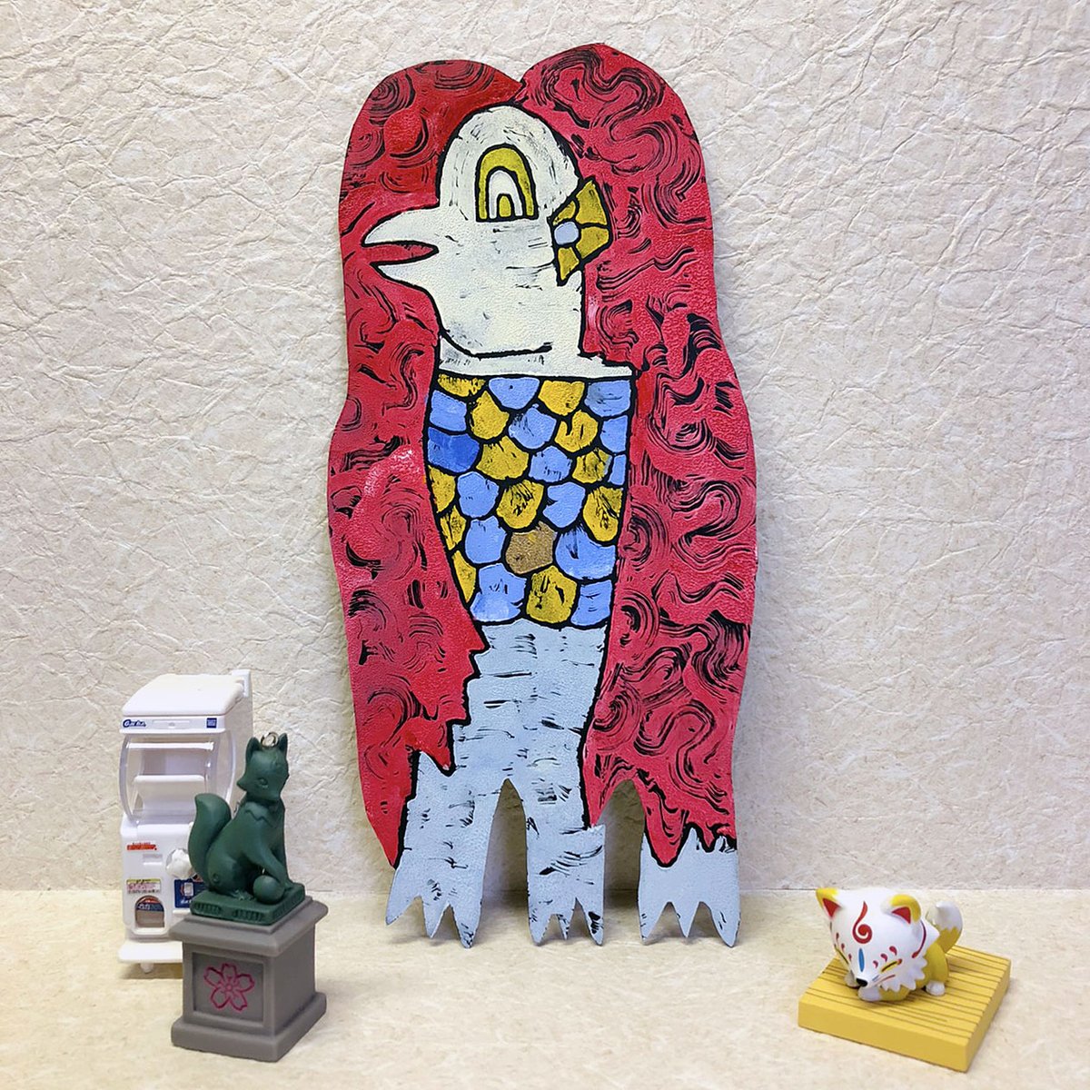タグ失礼します おもちゃや日用品、生活の中で目にするものをモチーフに、 木版画とモノタイプ(一点刷り技法)をミックスしたオリジナル技法「木版モノタイプ」で絵画を作っています #拡散希望 #夏の創作クラスタフォロー祭り #絵描きさんと繋がりたい #私の絵柄が好みって人にフォローされたい