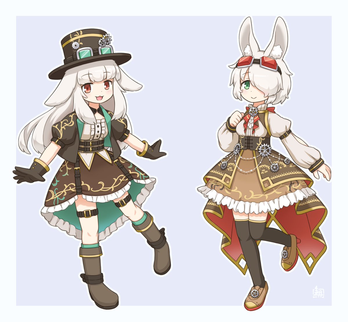 52 135 Skeb依頼絵のよその子、ルヴァンさんとセーグルさん。 スチームパンク風世界の鍛冶屋姉妹だそうです、かわいいね⚙️ 23/06/18 01:27