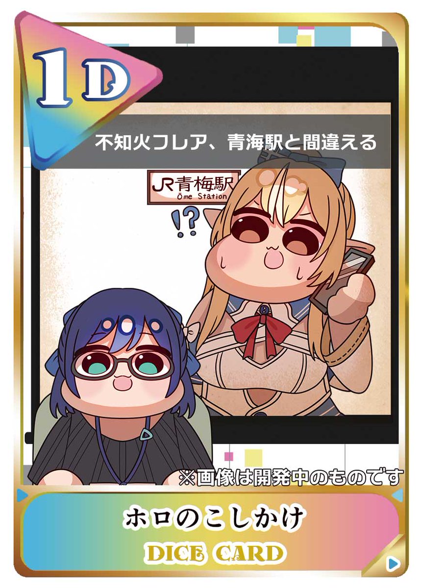 新作ボードゲーム、ホロメーカーのマルチ色ダイスカード「ほろのこしかけ(不知火フレア)」です! マルチ色カードはこんな感じの小ネタが多めになっています #しらぬえ #絵ーちゃん #ホロメーカー