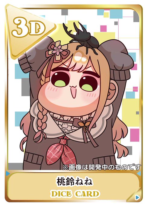 105 578 新作ボードゲーム、ホロメーカーのダイスカード(黄)「桃鈴ねね」です! 勝利点をYAGOOにするのはねねちの「股でYAGOOを光らせた女」発言から思いついたので、本作品制作における準MVPだったりします #ねねアルバム #ホロメーカー 23/03/31 00:07