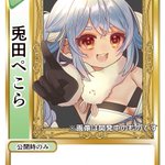 33 272 新作ボードゲーム、ホロメーカーの配信カード(青)「兎田ぺこら」です! 背景に隠れかなたも配置してもらいました! #ぺこらーと #かなたーと #ホロメーカー 23/04/06 23:33