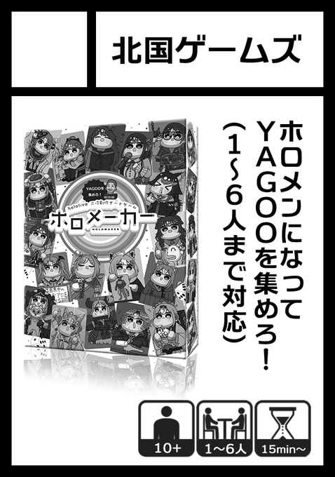 20 63 ゲムマ2023春のサークルカットを入稿しました。 Vtuber題材ボードゲーム第三弾です! 唐突にホロライブ1京生にされたプレイヤー達がダイスとコラボを駆使して配信に挑戦し、誰よりも早くYAGOOを集めるゲームになります!(情報の暴力) #ゲムマ2023春 #ゲームマーケット2023春 #ホロライブ #轟リス子 23/02/19 14:13