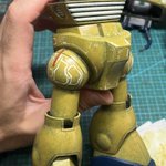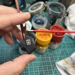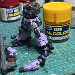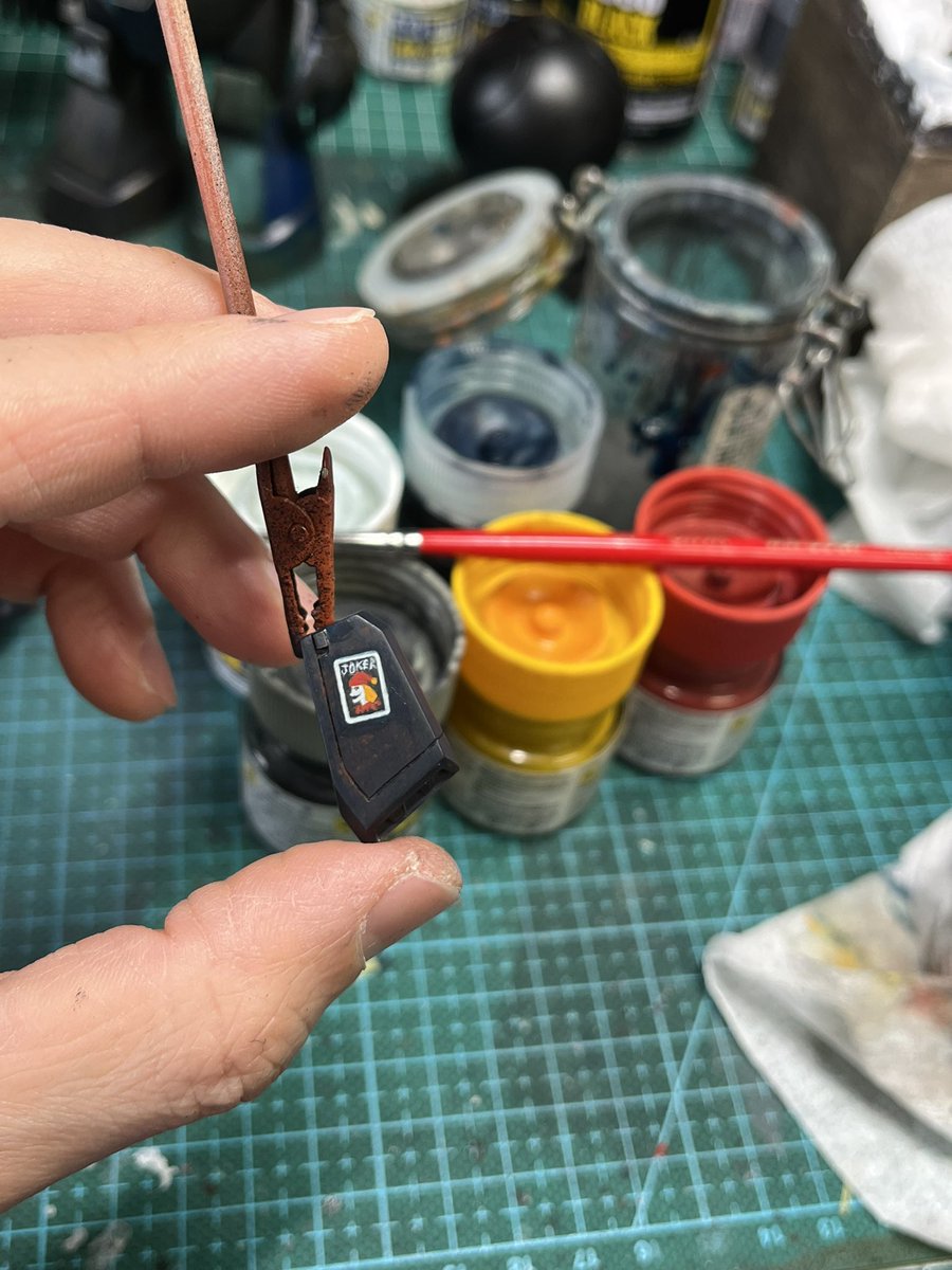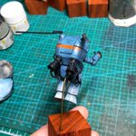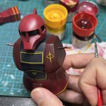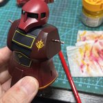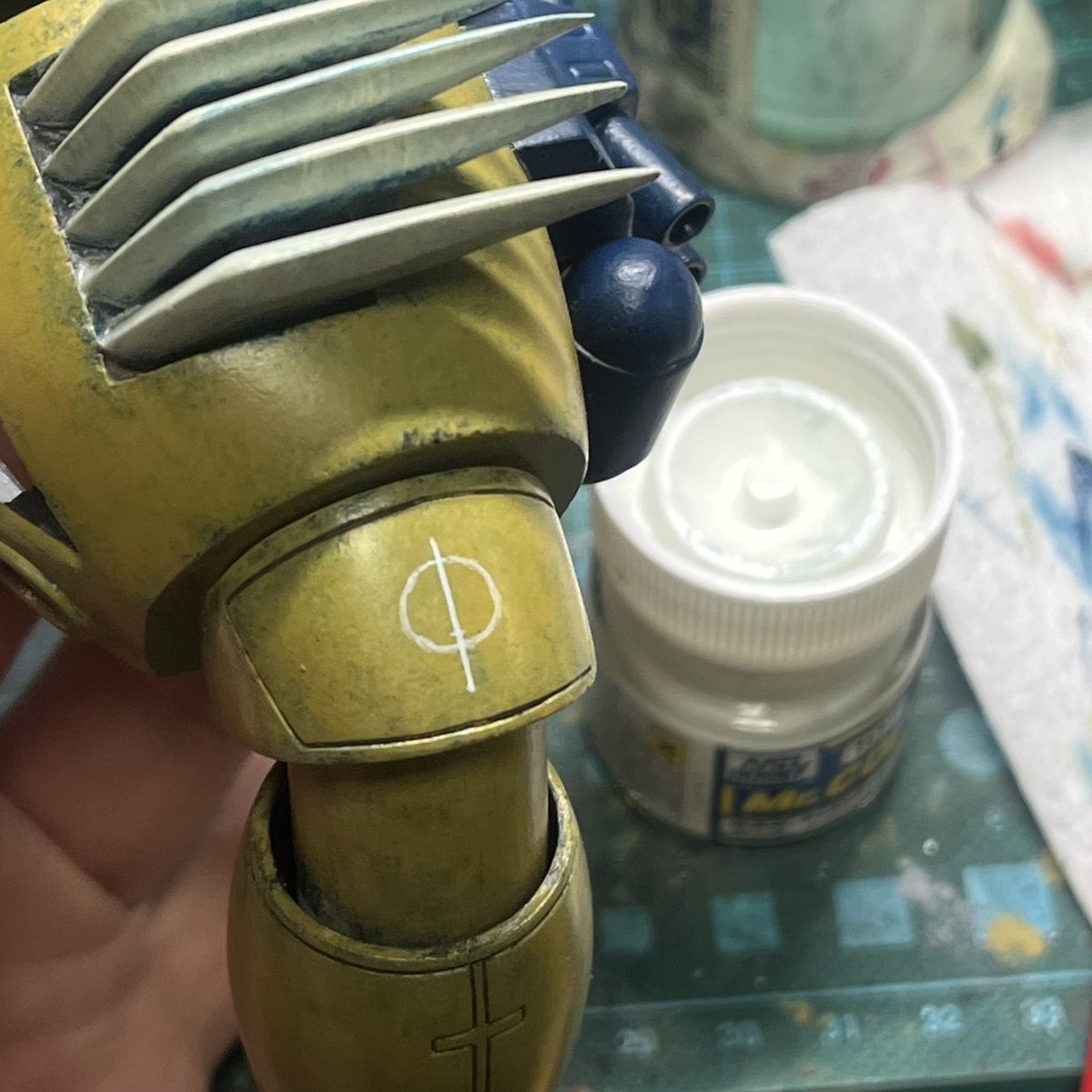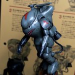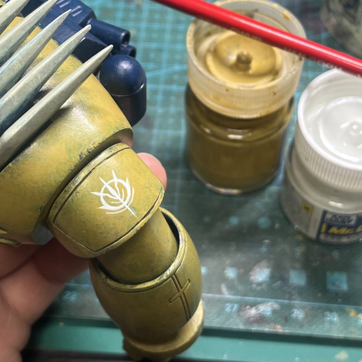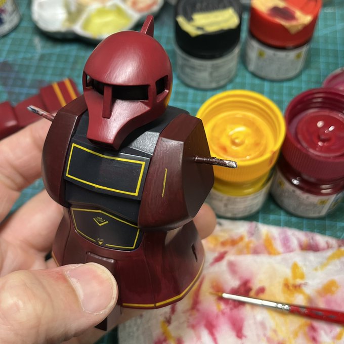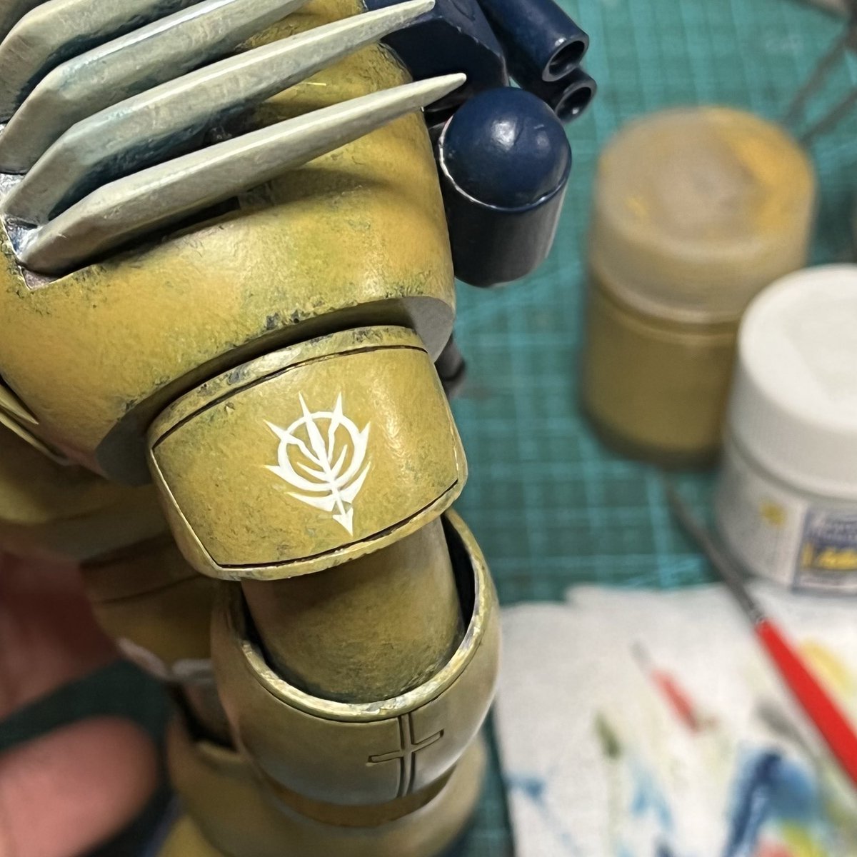 スネークアイ、完成しました! いぶし銀なグレー単色シャークマウス。マークは全てラッカー塗料で手描きしてます。 赤いA、ちょっと彩度が高すぎたかなぁ。もう少しくすむと思ったのだけれども。🤔 机の上がガチャーネンだらけになってきました💧 #マシーネンクリーガー