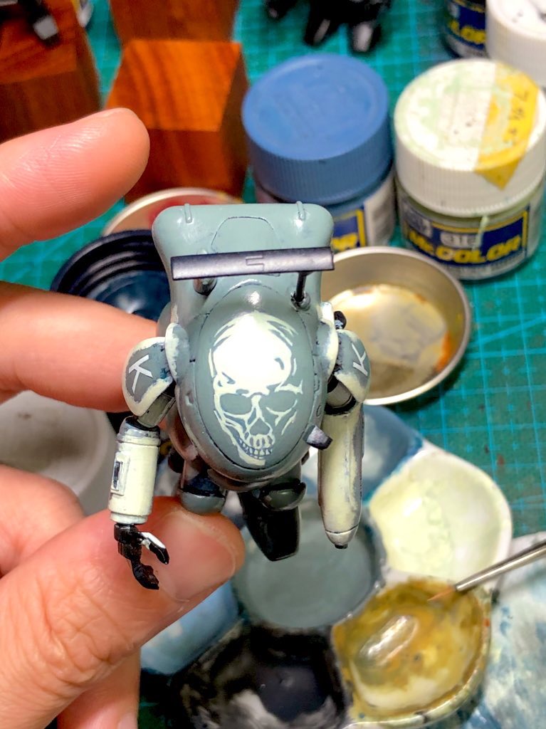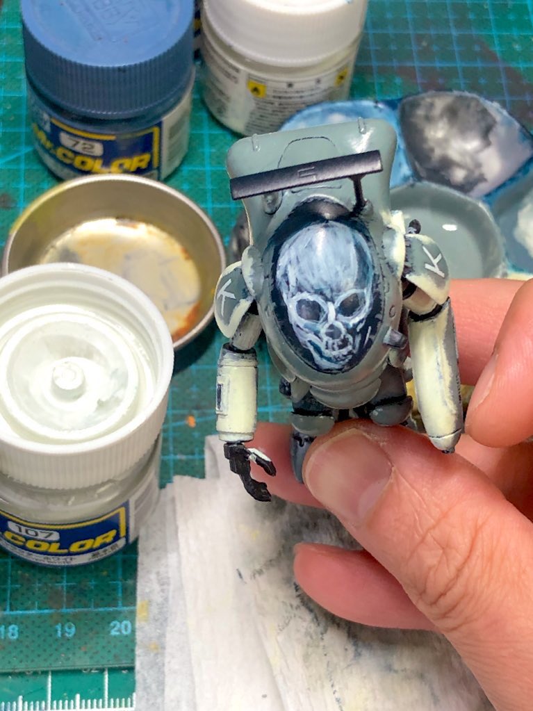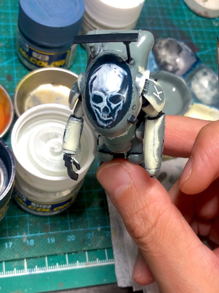 フリーゲ “スカルフェイス"完成しました! 思ったよりも怖い感じに仕上がって満足! 曲面にスカルを描くのはなかなか難しかったけど、上手く描けました😊 #マシーネンクリーガー #ガチャーネン