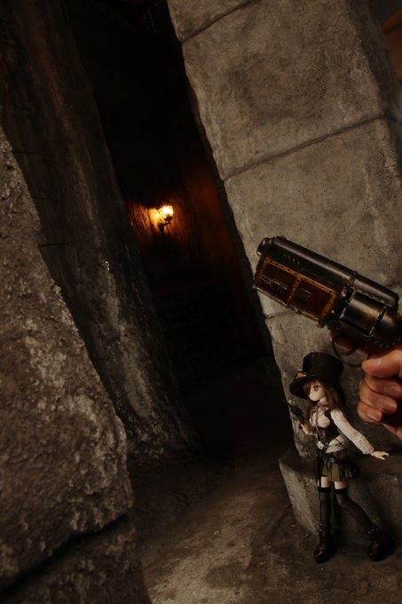 怪盗・黒夜叉を追跡しているうちに変な遺跡に迷い込んでしまいました。+古写真風バージョン。 #mallmelly #candynoir #ディーゼルパンク #スチームドール #ドール古写真 #MDDはいいぞ #ノードール・ノーライフ