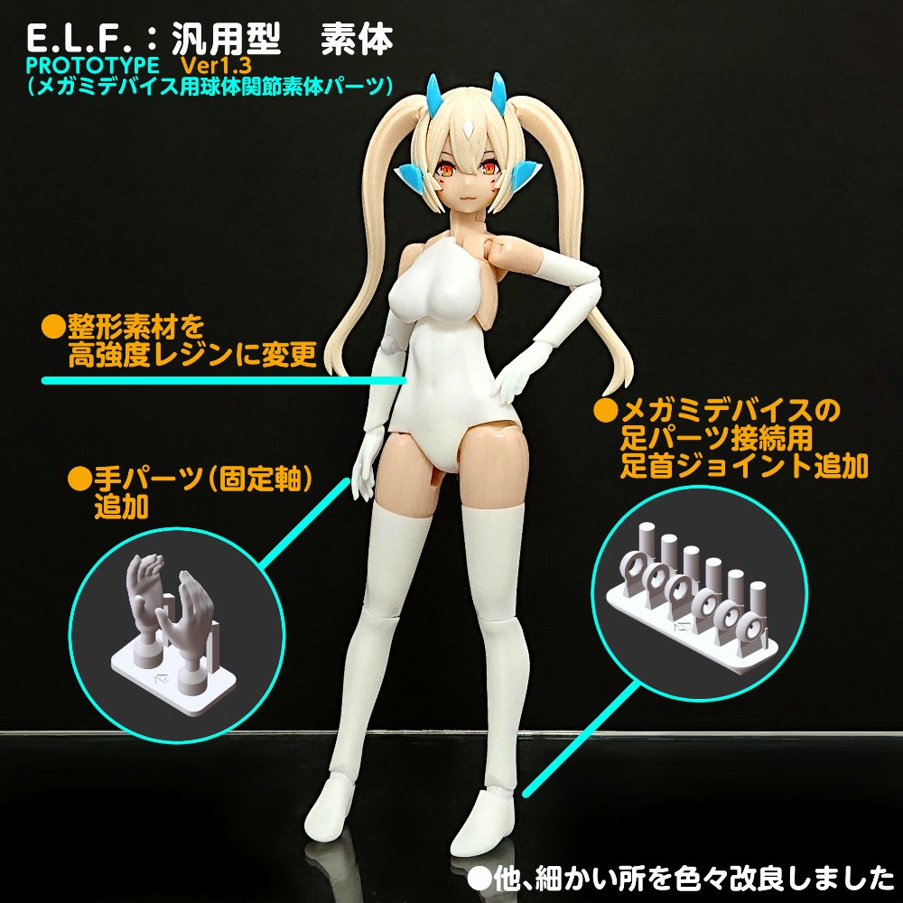 AGITODesign 告知 其の弐 肌色の素体も出したいな~と思っていたので… E. L. F. 素体(P)Ver1.45(SA) オリジナル上半身パーツ&肌色用に臀部を改修した新型になります。こちらも3500円になります。 後、フチのバサバサ感を追求したフリンジハット2 ¥800です #メガミデバイス #WF2022S #AGITODesign