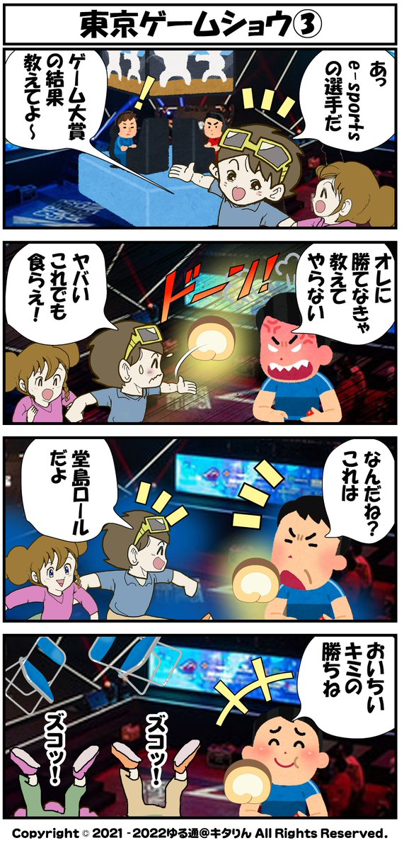 前回の4コマ漫画の続きです🤟 東京ゲームショウで観戦するeスポーツって 楽しいですよね #4コマ漫画 #漫画が読めるハッシュタグ #絵描きさんとつながりたい #イラスト好きと繋がりたい #ゆるいイラスト #イラスト #漫画