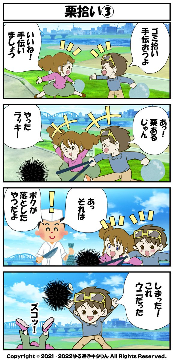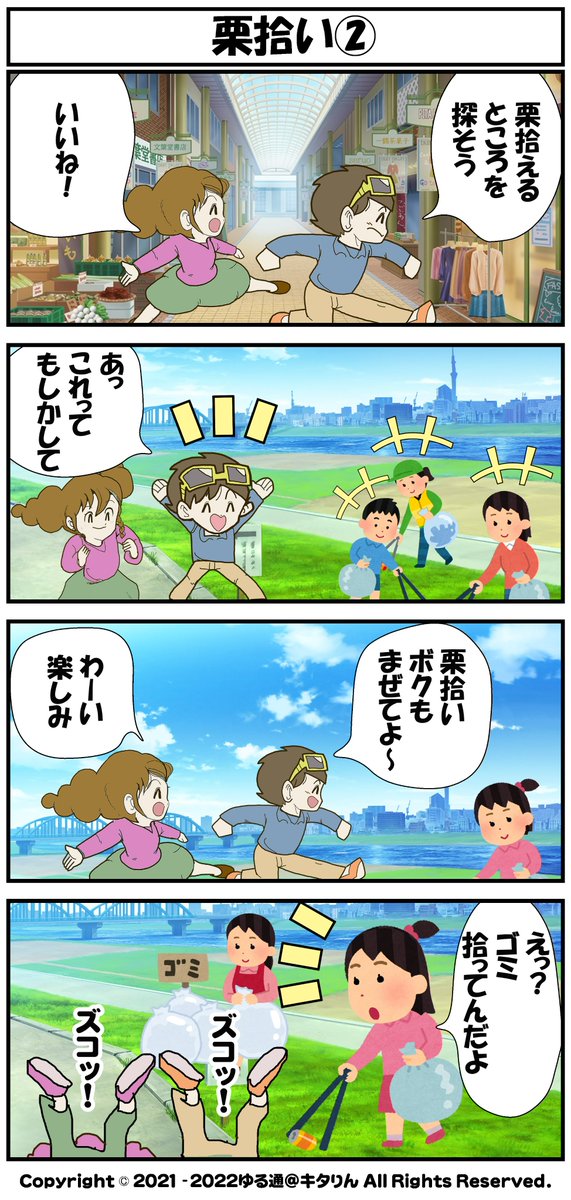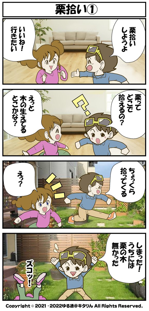 前回の4コマ漫画の続きです🤟 栗拾いのときって、 なかなか栗が見つからないんですよね #4コマ漫画 #漫画が読めるハッシュタグ #絵描きさんとつながりたい #イラスト好きと繋がりたい #ゆるいイラスト #イラスト #漫画