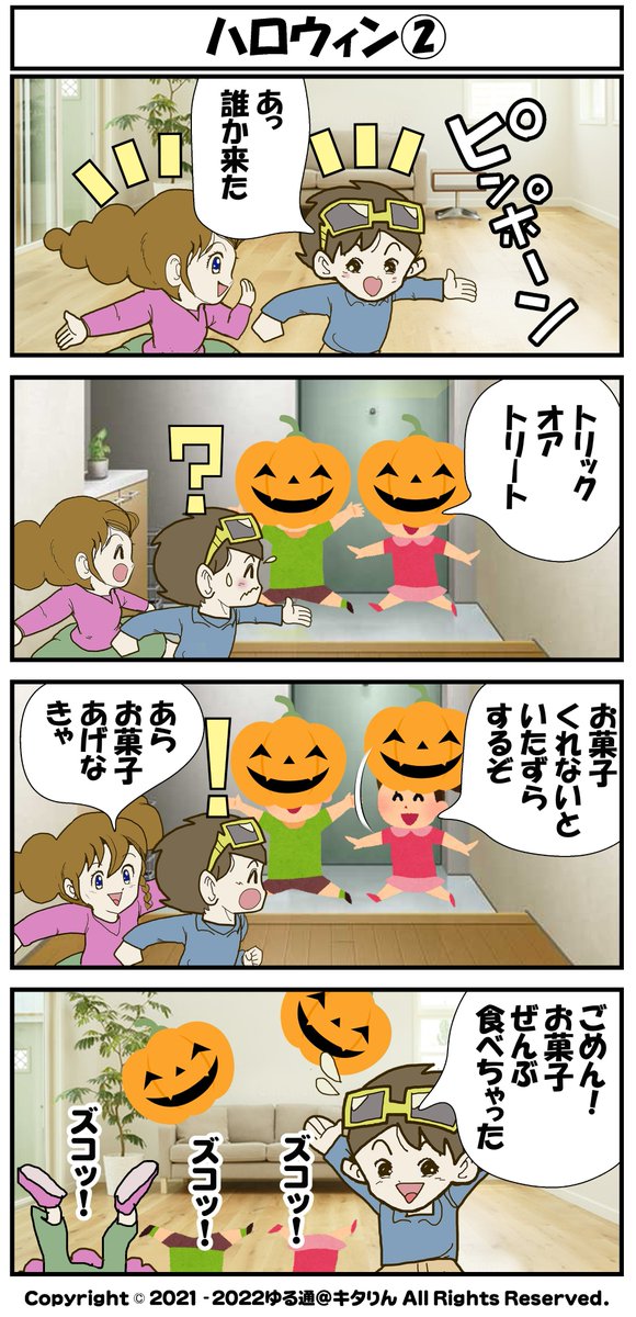 前回の4コマ漫画の続きです🤟 ハロウィンといえばお菓子ですね トリックオアトリート #4コマ漫画 #漫画が読めるハッシュタグ #絵描きさんとつながりたい #イラスト好きと繋がりたい #ゆるいイラスト #イラスト #漫画
