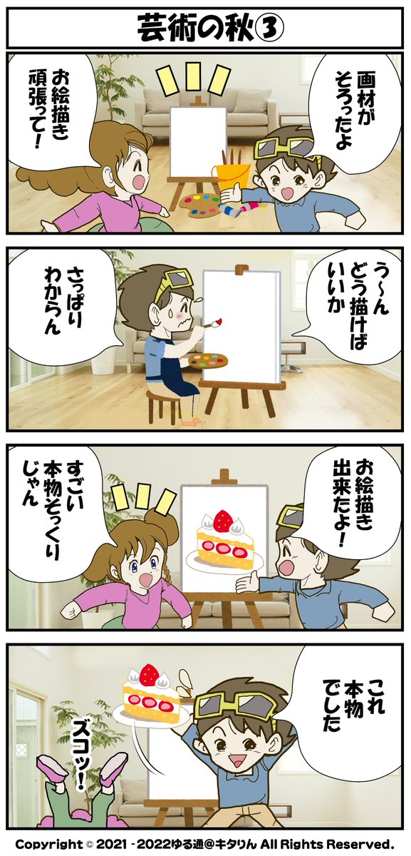 前回の4コマ漫画の続きです🤟 芸術の秋編のラストです。 #4コマ漫画 #漫画が読めるハッシュタグ #絵描きさんとつながりたい #イラスト好きと繋がりたい #ゆるいイラスト #イラスト #漫画