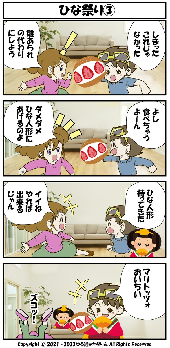 前回の4コマ漫画の続きです🤟 ひな祭りといえばひな人形ですよね #4コマ漫画 #漫画が読めるハッシュタグ #絵描きさんとつながりたい #イラスト好きと繋がりたい #ゆるいイラスト #イラスト #漫画