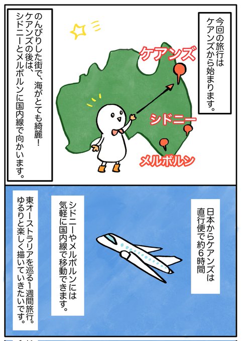 オーストラリア旅行記🐨🇦🇺 4年ほど前のお話です✈ ちなみに、旅行のキッカケは婚約者との大喧嘩でした。笑 (出発する頃には仲直りしていたのでルンルンで旅立ちました) #漫画が読めるハッシュタグ #コミックエッセイ #エッセイ #オーストラリア #旅行 #マンガが読めるハッシュタグ #漫画 #マンガ
