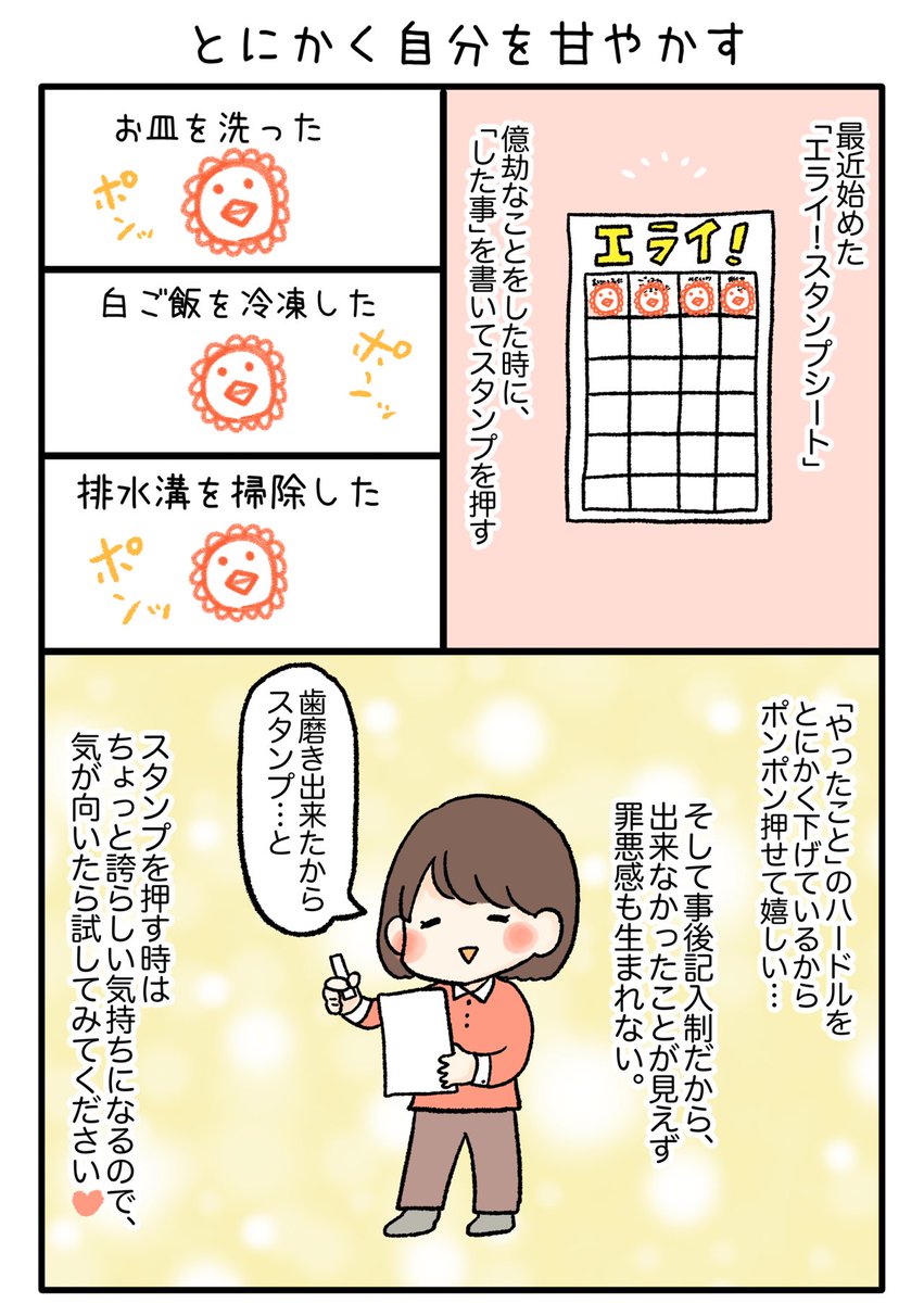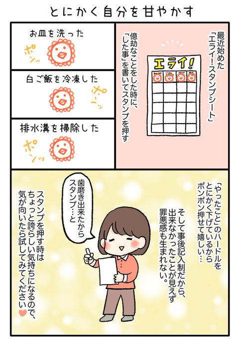自分を甘やかす「エライ!スタンプシート」 自己肯定感が上がってオススメです😇 #漫画が読めるハッシュタグ #マンガが読めるハッシュタグ #漫画好きな人と繋がりたい #エッセイ漫画 #漫画好きと繋がりたい #絵描きさんと繋がりたい