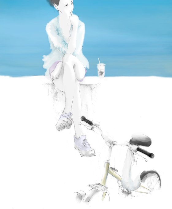 秋日和にしては、ちと暑いけど… 何処かに、いますぐ行きたい。 #illustration #illust #イラスト