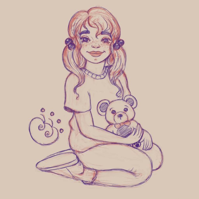 Hi guys 💕💜, another curly headed cutie drawing. #art #drawing #illustration #digitalartwork #sketch #characterart #charactedesign #curlyhair #curlyheadedcutie #teddybear