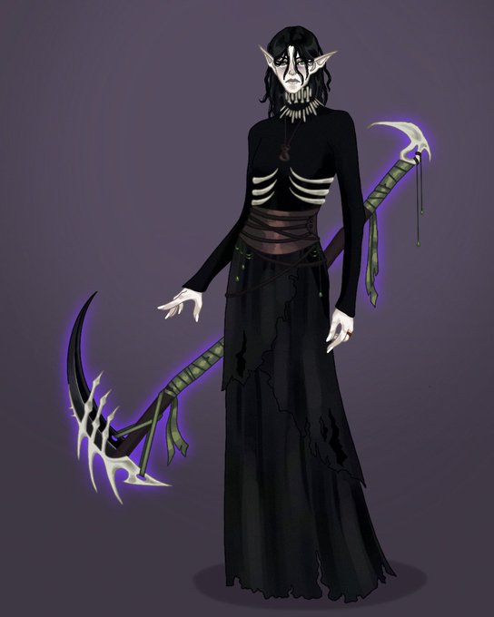 0 7 finished the ref sheet for my current dnd girly… her name is Syviis and she’s a death domain cleric 💜💀💜 #dnd #dndart #cleric #arttwt 22/08/25 11:36