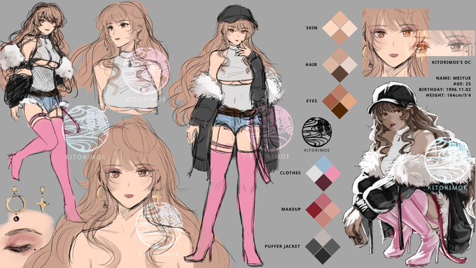 Rough character sheet of my oc, Meiyue! It’s my first time participating in #Artfight (Team Wither 🍄🍂🍁)!! #Artfight2022