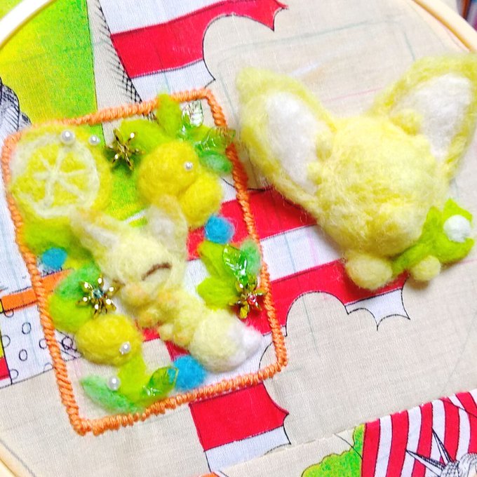 ミニフレームに羊毛フェルトのきつねとビーズの花束を刺繍しました✨🌼✨5×5cm。 6/30のキツネオンリーで販売します! #きつねつき #羊毛フェルト kitsunenustik.tumblr.com/post/185515197…