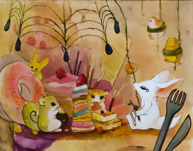 5 52 しろいきつねを日本画や水彩で。 また、動物の遺骨を使った日本画も描いています。 #アナログ作家フェス #夏の創作クラスタフォロー祭り #日本画 #きつね #透明水彩 21/08/07 16:19