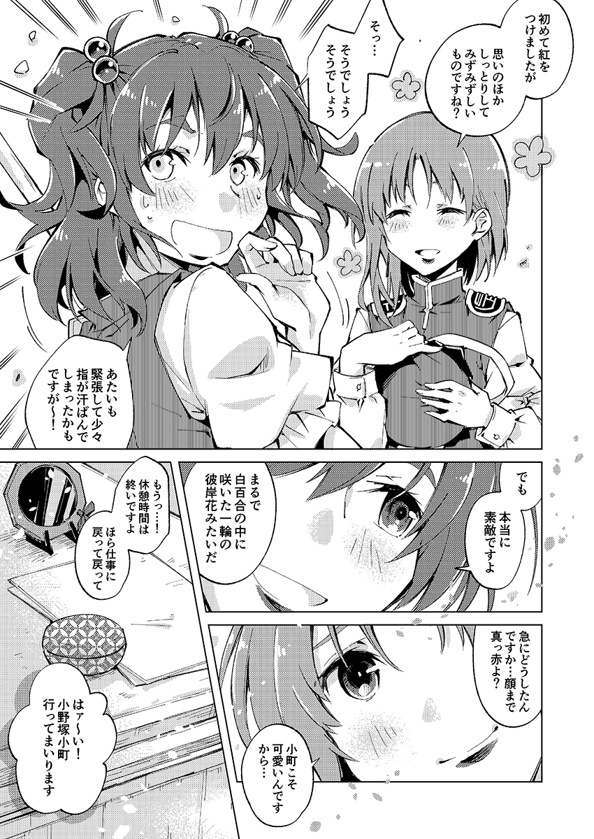 海野プリンさん(@kaisenpurin)主催の合同誌『東方口紅合同』1周年おめでとうございます!というわけで、寄稿したこまえーき漫画『小町紅 ~こまちべに~』を公開します。8頁を全力で描いた記憶…(*´ᴗ`*)PixivにもUPしておきましたのでよしなに pixiv.net/artworks/10248… #口紅合同