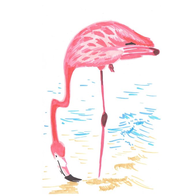 Flamingo isn't only beautiful (flame-coloured in Spanish, due to beta-carotene from food), but functional: the way their legs work is quite peculiar, as well as their beak. #kitsuneart #kitsunesmile #inktober2019 #inktober #flamingo #pink #bird #fauna #тушьябрь #фламинго
