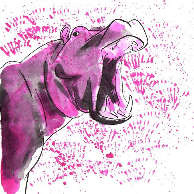 The hippo, is the third largest land mammal (after the elephant and the rhinoceros). That's the beast I was mostly scared of in childhood. #kitsunesmile #kitsuneart #inktober #inktober2019 #hippo #hippopotamus #Hippopotamusamphibius #animals #wildanimals #fauna #africananimals