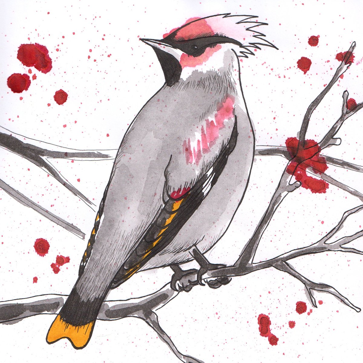 Day 21 Waxwings are associated with children's whistles and... behaving wierdly after eating overripe berries in winter. #kitsunesmile #kitsuneart #inktober #inktober2019 #waxwing #bird #fauna #wildnature #Bombycillagarrulus #улыбкакицунэ #фауна #птицы #тушьябрь #свиристель