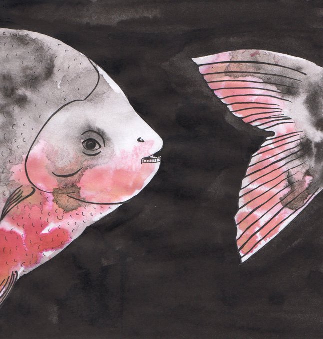 Pacu or tambaqui is a fish that looks like piranha with human teeth which it uses to eat plant food. Sure, pacu is popular in aquaculture, especially at the dentist's. #inktober #inktober2019 #kitsunesmile #kitsuneart #fish #Colossomamacropomum #tambaqui #pacu #underwater #fauna
