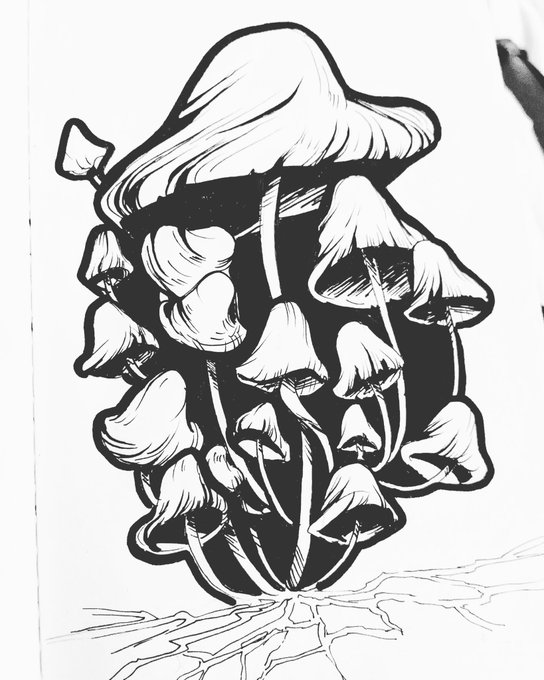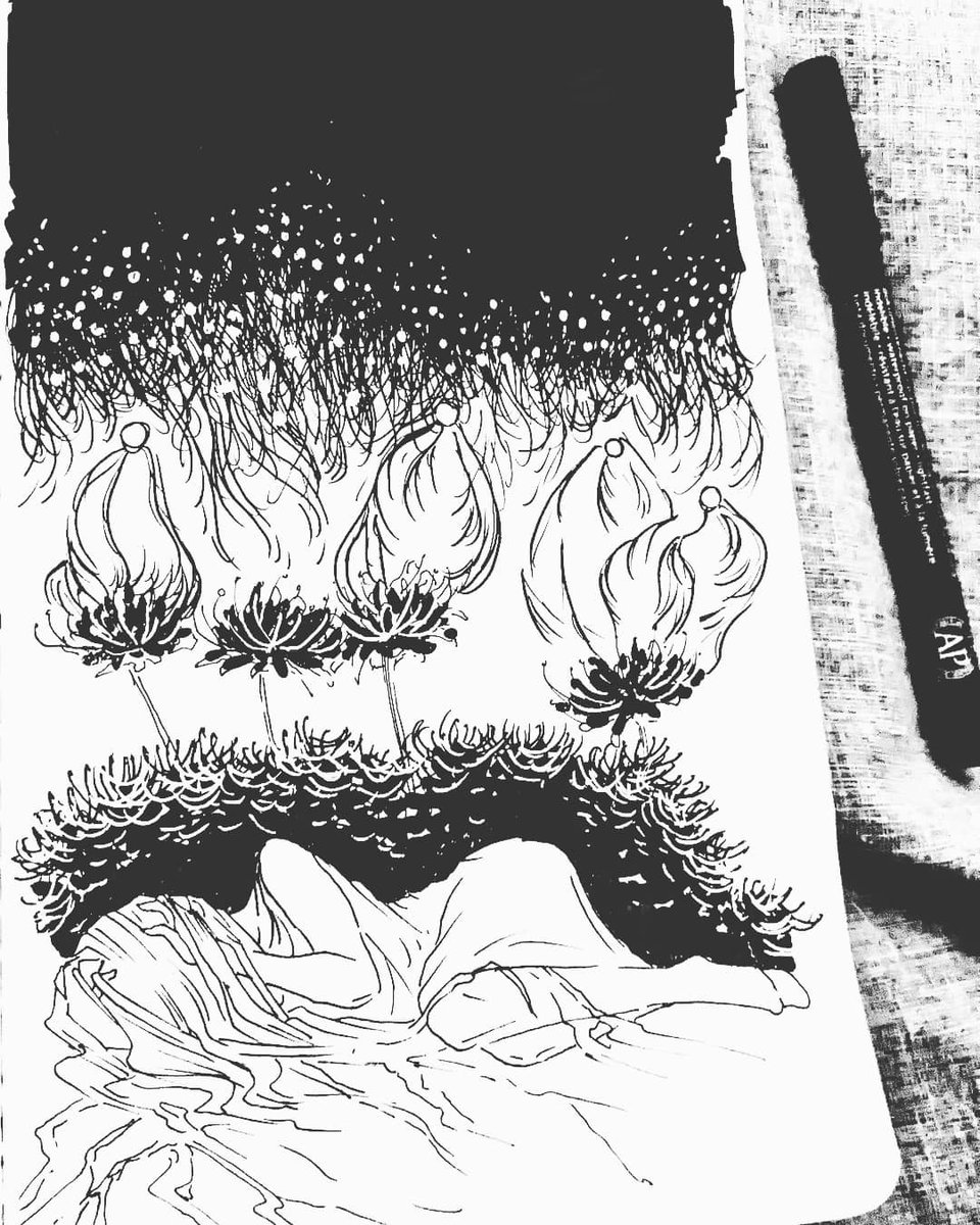 Last one so far. Imeno no Awai. (Field of Dreams) A mushi that infest dreams. They cannot be truly separated from their hosts, and can cause the host's dreams to become reality. #inktober2020 #Inktober #inked