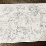 今日は5、6年振りに会う私の尊敬してる神絵師とオフ会してきました。 私が1人描いてる横で魔法みたいに描いていくんですこの方。 三兄弟描いてくださいました🙏☺️可愛い