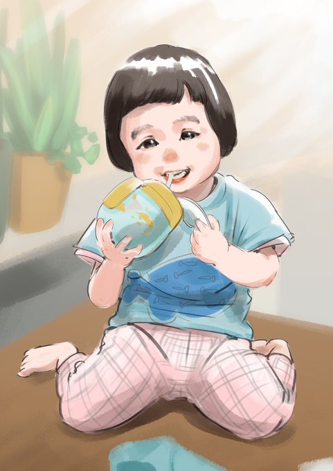 0 1 髪が伸びたので娘の髪を切りました記念 #イラスト 23/04/07 12:05