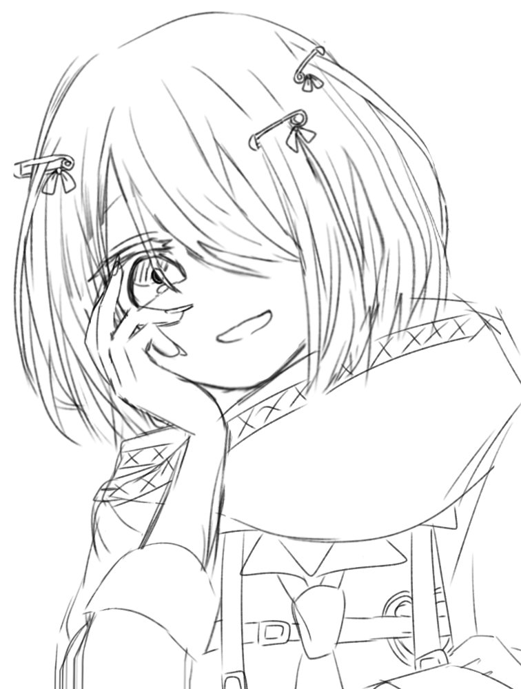 まさかラフだけで1時間も使うとは思ってなかった……線画めんどくさいな…( 。ω 。) #まっしろキャンバス