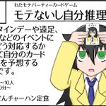 26 68 モテ即のサークルカットを差し替えましたので改めて宣伝です。 わたモテがテーマの多人数で遊べるカードゲームを販売予定です。 初参加ではありますがよろしくお願いします。 #モテ即11 #わたモテ 22/08/26 18:25