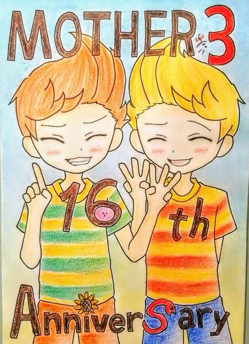 #今月描いた絵を晒そう うどんの日、七夕、海の日、33周年! 見事に全部絵柄違うwww 来月は2の周年絵や、コーヒーこぼした虹の日のリベンジしたい!ω・`) お気楽書き._.152 #MOTHER2