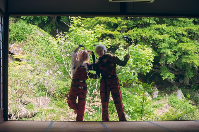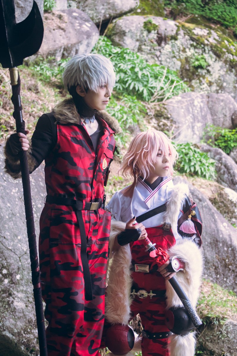 cos ※オフショ 自撮り棒写ってるし絶対やらないポーズだと思うんだけど可愛くてとても好きなので加工してもらいました☺️ 2枚目は待ちぼうけ食らってる2振 泛 : Akiraさん photo : maoさん