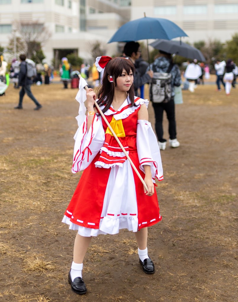 コミケ始まりましたね! 冬コミ同様防災公園でうろついてる霊夢です!🤡🤡 え?撮影?お賽銭と引き換えになりましてよ( ∩'-'💰⊂ ) #エアコミケ #C98 #コミケ98
