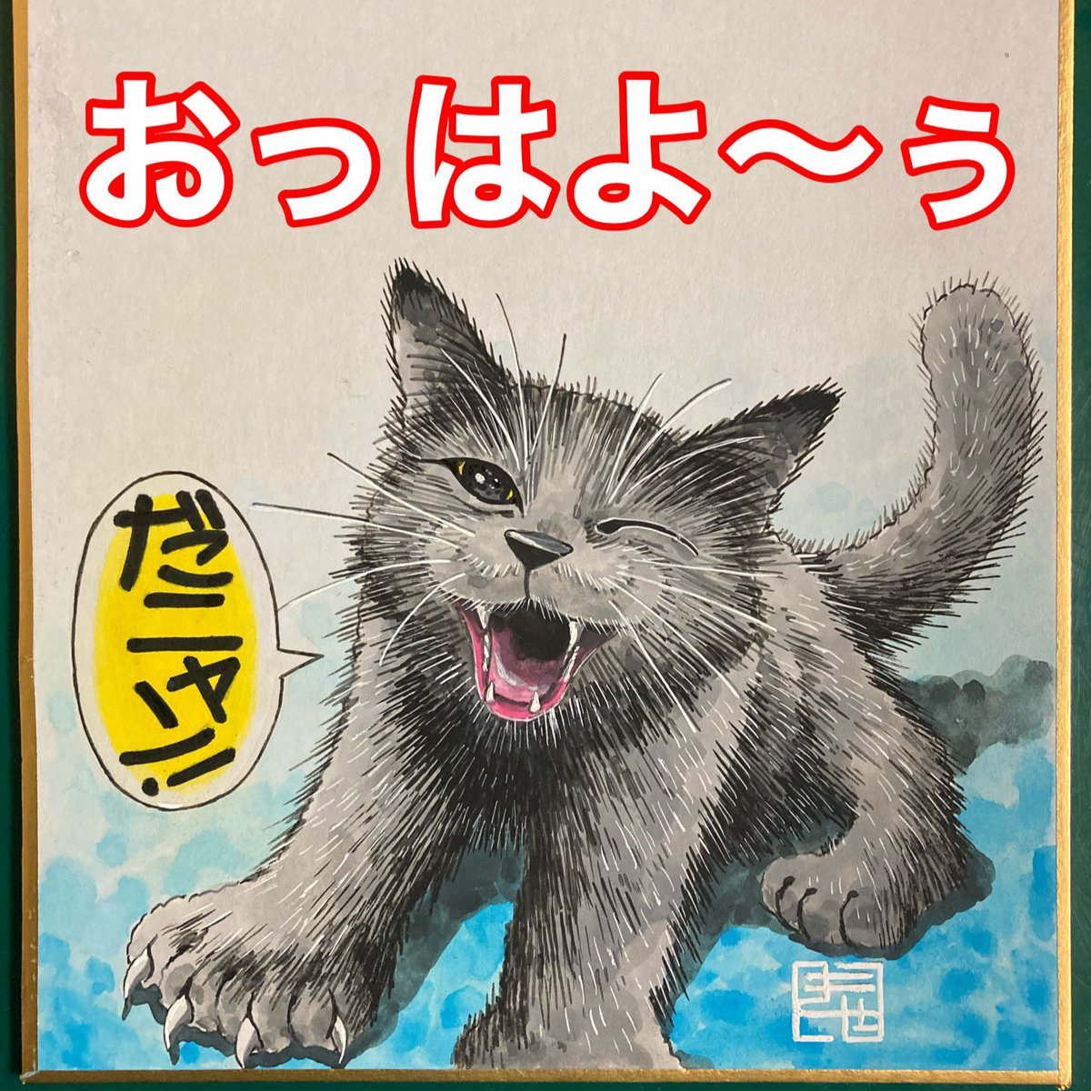 I slept a lot❣️ I yawned big😃 いっぱい寝ました❣️ 大きなアクビ出ちゃいました😃 #猫 #ねこ #にゃんこ #絵描きさんと繋がりたい #art #絵 #水彩画 #cat #猫好きさんと繋がりたい #猫イラストレーター #銀猫 #あくび #Yawn