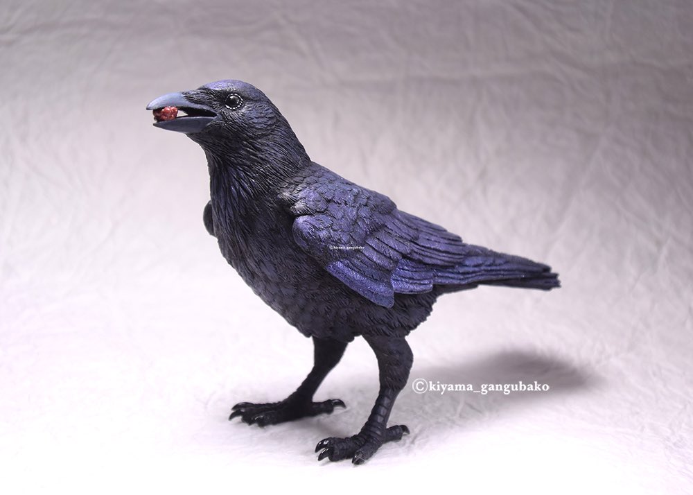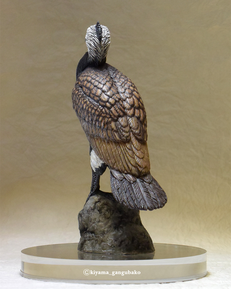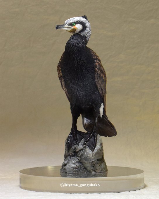 カワウはエメラルドグリーンの瞳がとても綺麗なのですが、水性塗料では表現出来なかったので目だけラッカーとエナメルで塗りました。水掻きのある黒い足も革手袋のようで好きです😌 #博物ふぇす #WF2023S #gangubako