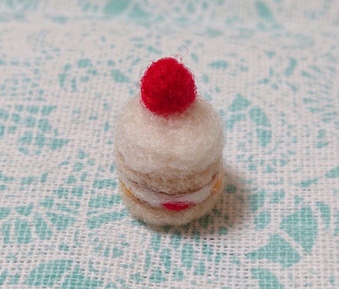 0 2 イチゴケーキ 1×2cmでくまに合うサイズ 前の写真もついでに 丸のが好きかな #羊毛フェルト 21/05/16 21:02