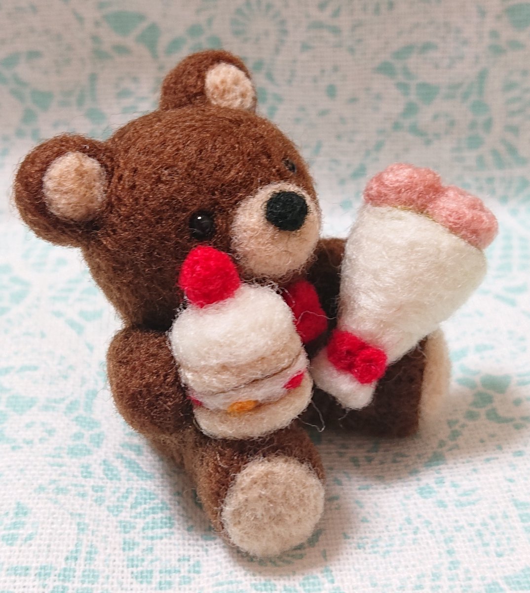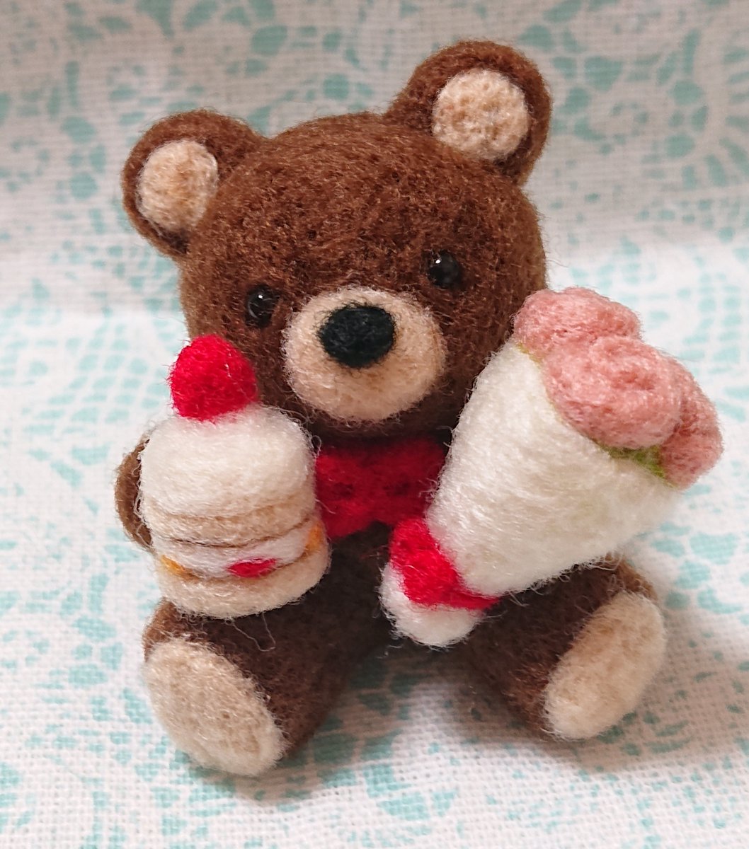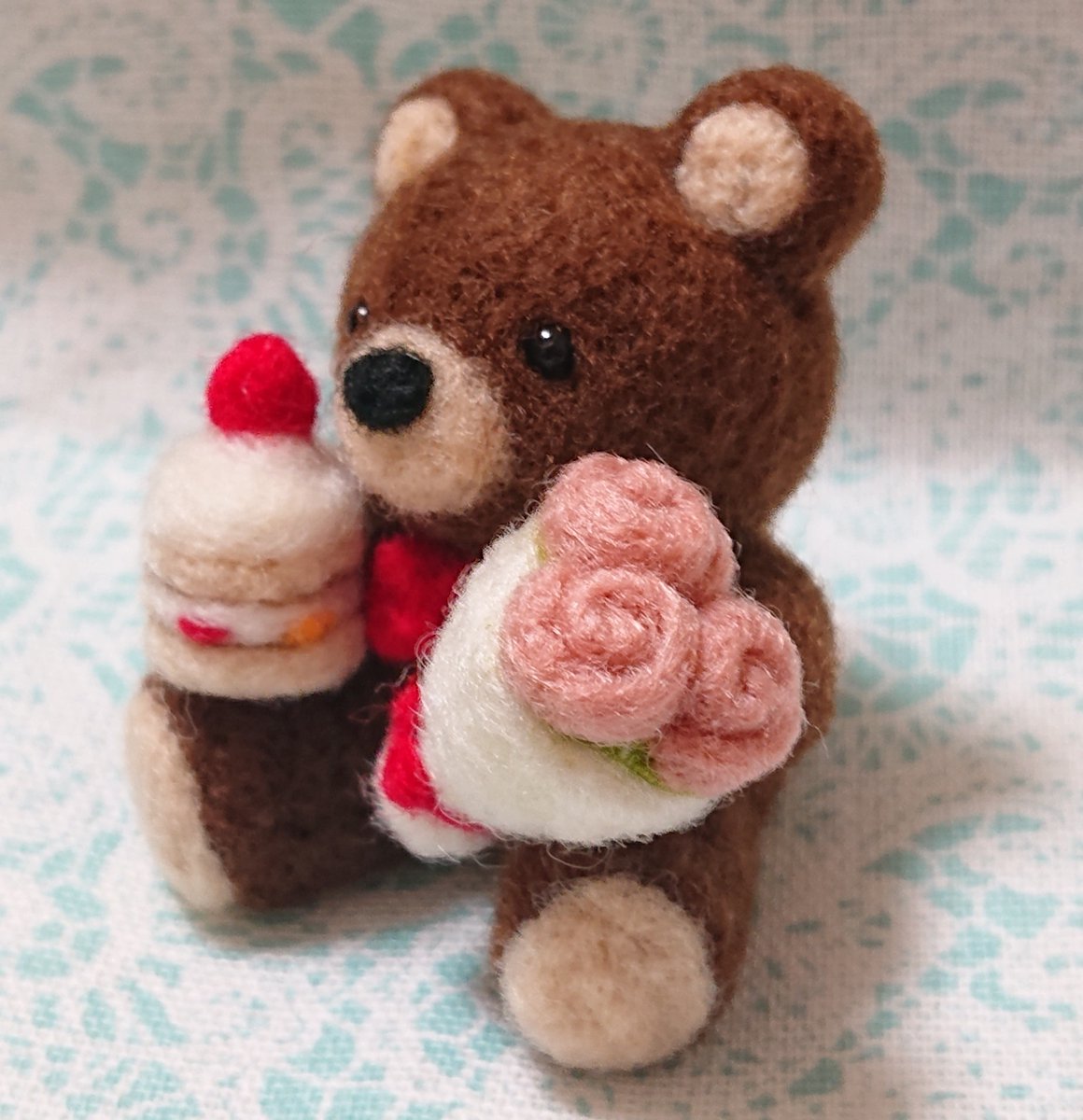 happy birthday bear 🎂🎉 #くじらフエルト #羊毛フェルト