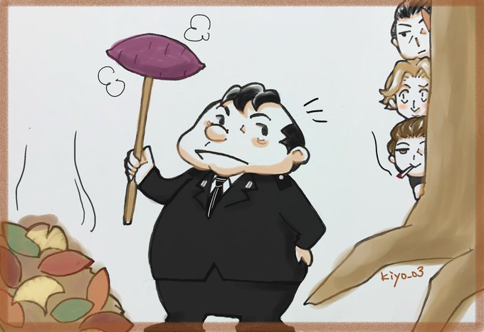 25 112 #ワートリ版深夜の真剣お絵かき60分一本勝負 「鬼怒田本吉」+15min 秋の焼き芋きぬたさんと匂いに誘われた上層部。 21/10/06 23:49