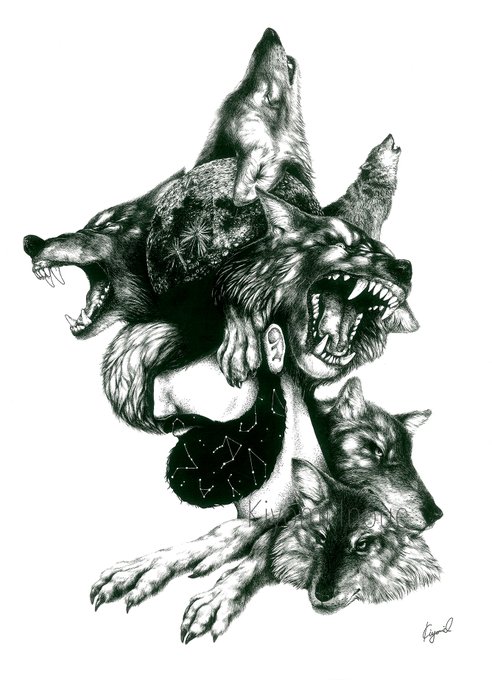 『Wolf』🐺 #ペン画