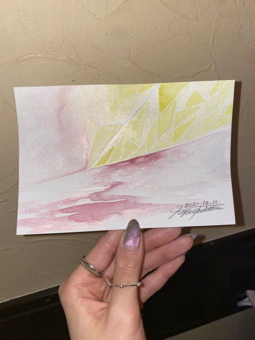 前回描かせていただいたとあるご婦人の香り↓ ✨あなたの香り描きます✨ 美しいご婦人の香りを描きました 頭の後ろから孔雀色に青が混ざった美しい風が、体の中を抜け前へ出る 梅紫色が透かして小さく輝く 秀麗で優しい風が包み込む #水彩画 #アート #立花清美 #共感覚 #あなたの香り描きます #香り twitter.com/kiyomiartT/s…