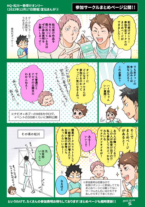 2023/12/17開催(予定)HQまつかわいoOい受けオンリーサークルまとめページを作りました! 松受け作品を作りたい、あるいは既に作っているすべての方へ。参加申し込み「検討中」や「委託参加」予定でもOKです!ぜひフォームから参加表明をお願いします👇🥳👇 lit.link/chukaracoffee